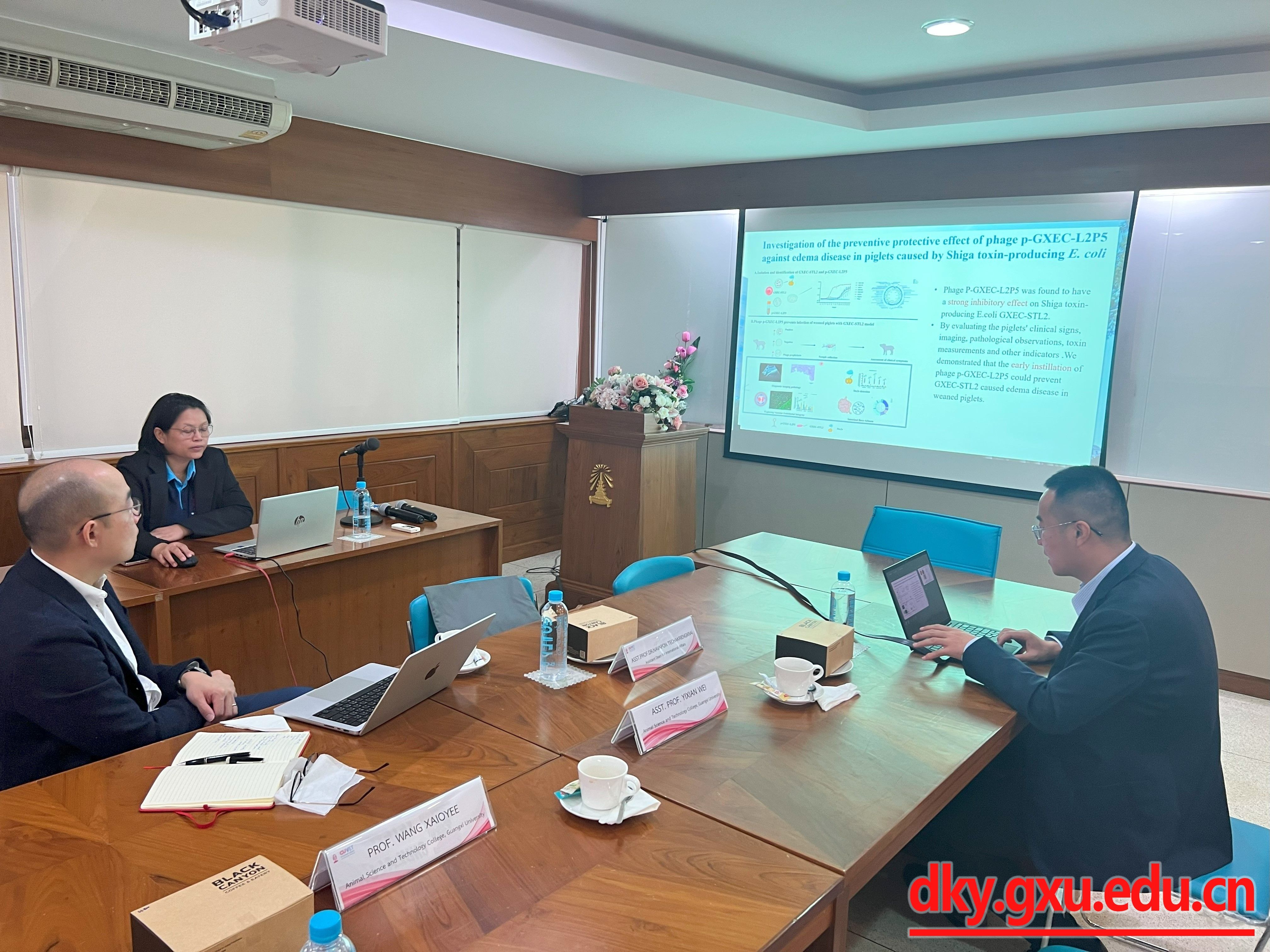 Associate Professor Wang Xiaoye and his delegation held lively talks with Dr. Waraphon Phimpraphai, Deputy Director of the Graduate School and Continuing Education Department of Kasetsart University, Mr. Pichai Jirawattanapong, Deputy Director of the Administrative Department, Assistant Professor Manakorn Sukmak, Deputy Director of the Research Department, Assistant Professor Alongkot Boonsoongner, Deputy Director of the Animal Disease Laboratory, and Mr. Narut Thanantong, Director of the Agricultural Resources and Production Medicine Department, and visited the experimental center and various animal hospitals at the Kamphaeng Saen campus of Kasetsart University.