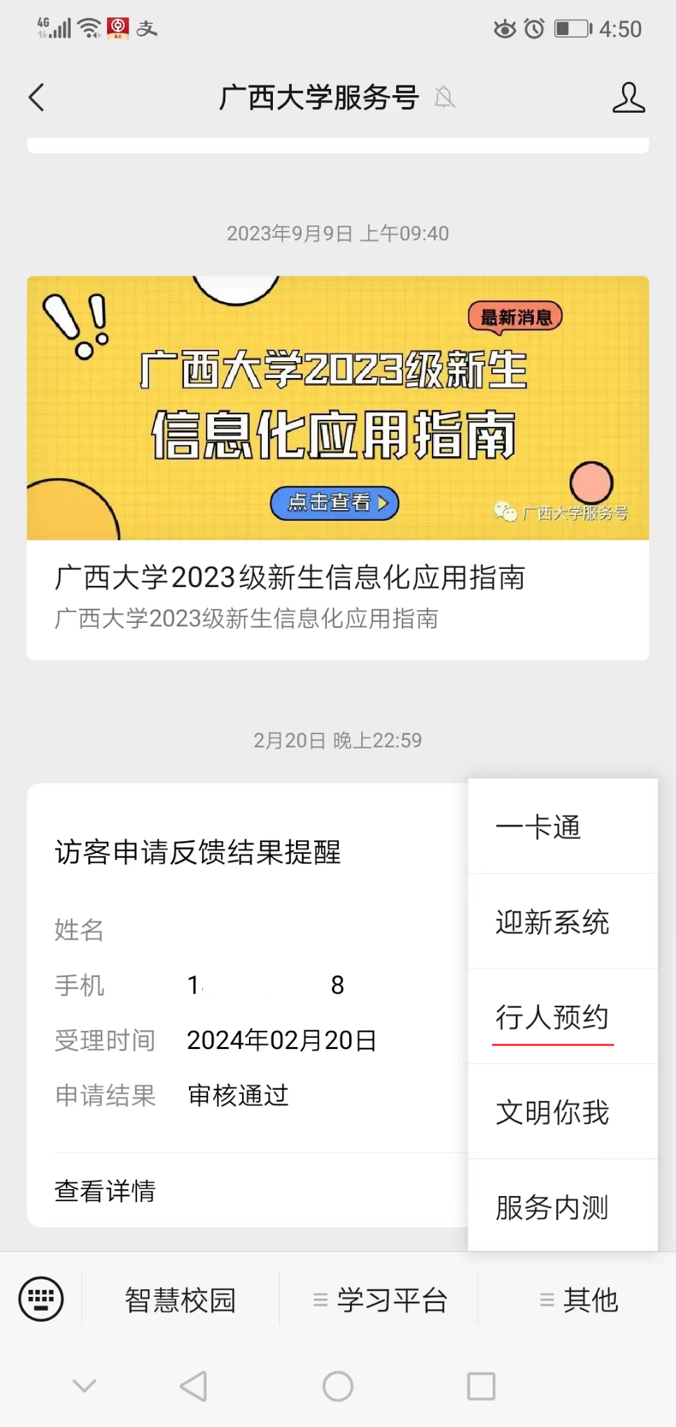 温馨提示:进入校门申请一次最多可以7天,最多可选择5个不同的校门。